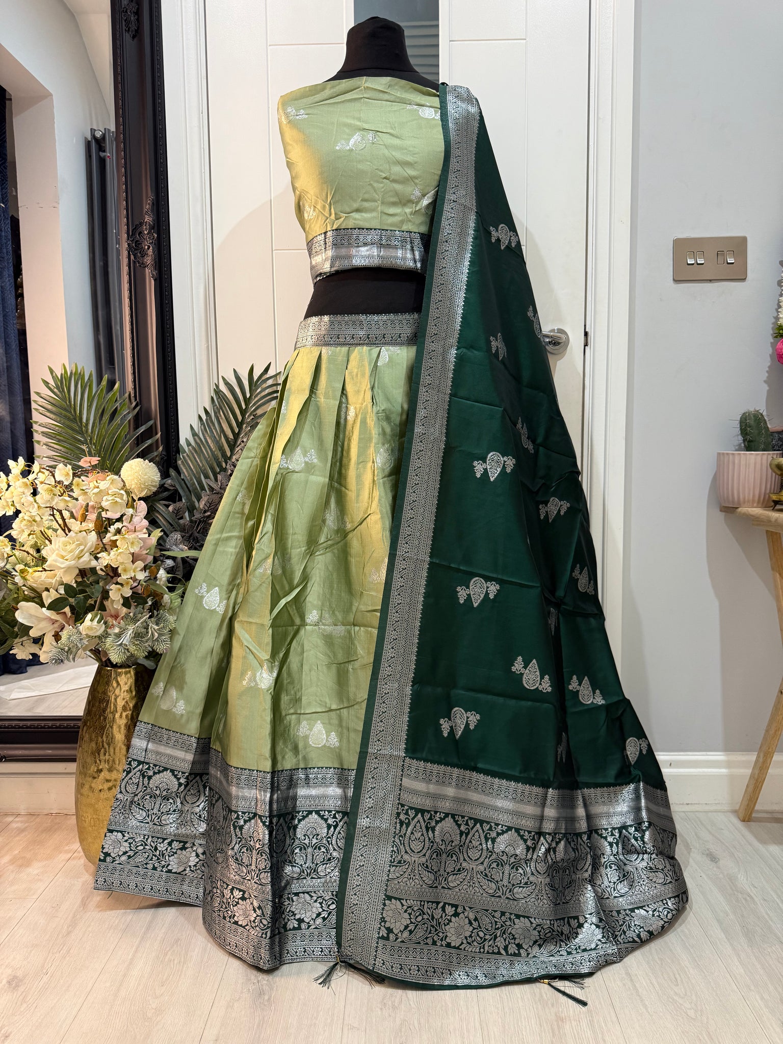 Semi stitched half saree / semi silk materiel with Banarasi Duppatta