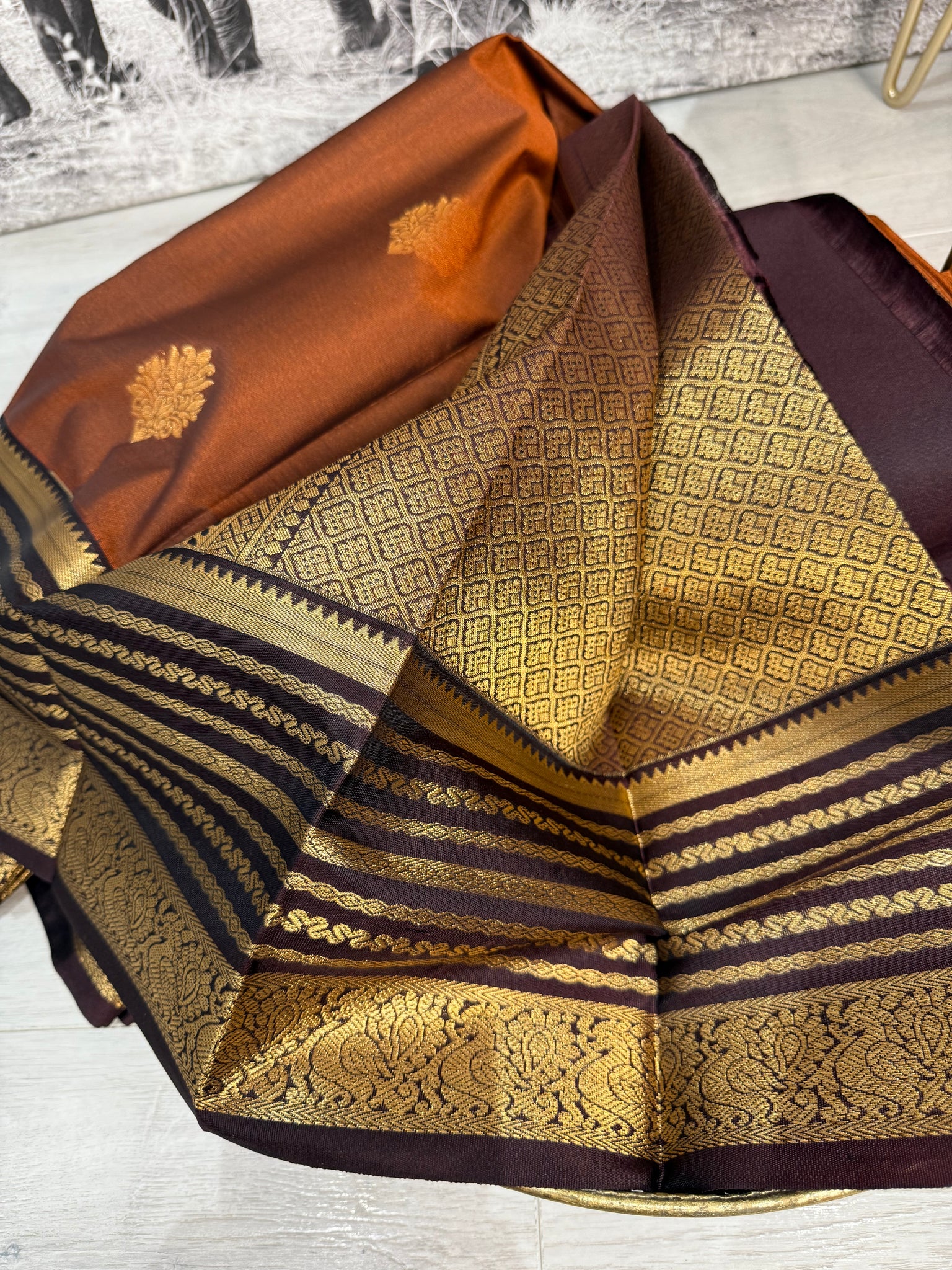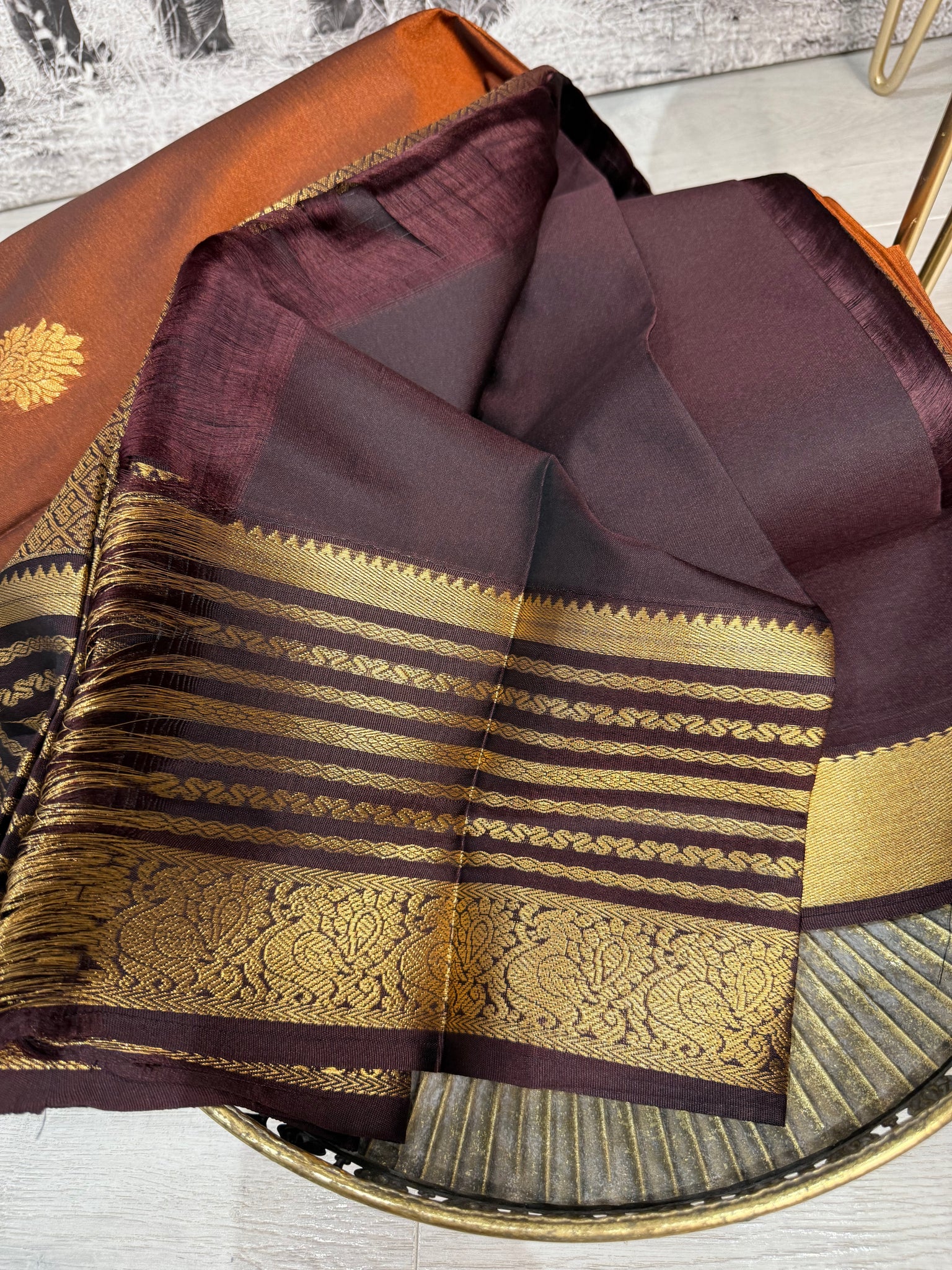 Semi Kanchipuram silk Saree with browning border and blouse