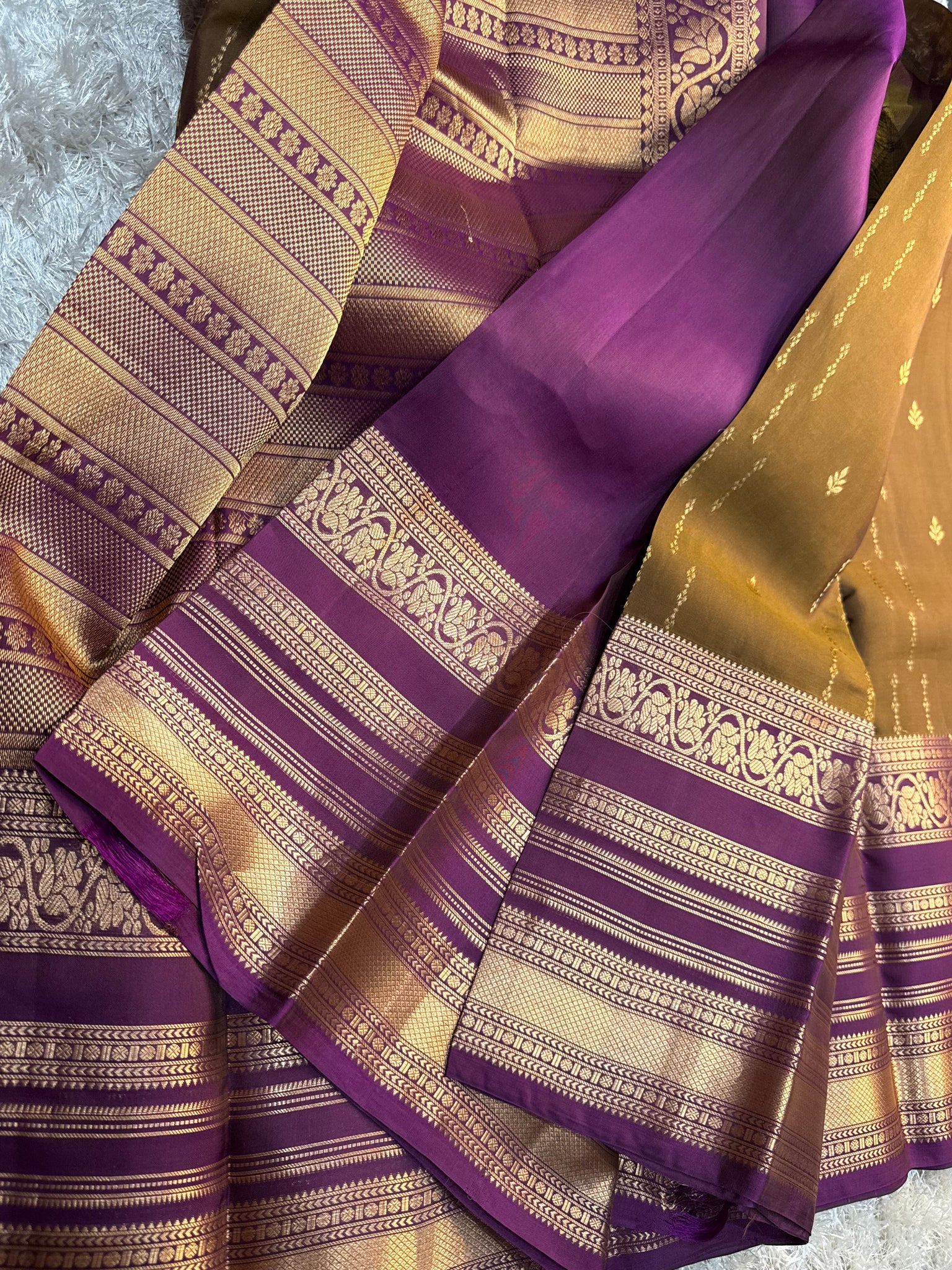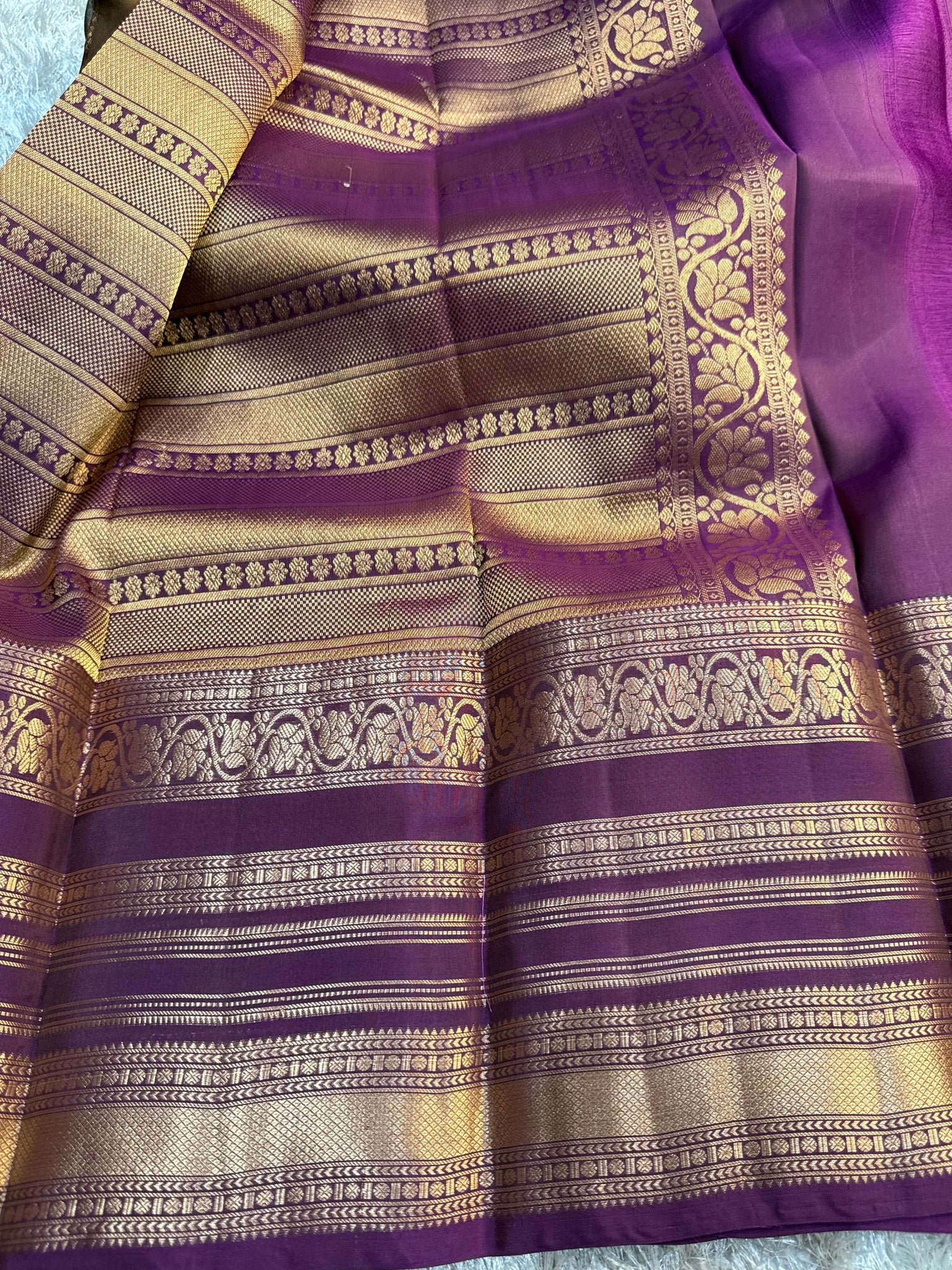 Kanchipuram silk saeee with purple border and blouse