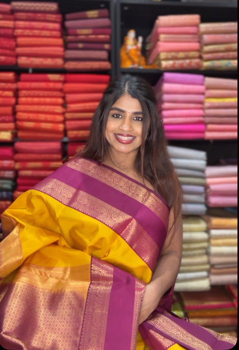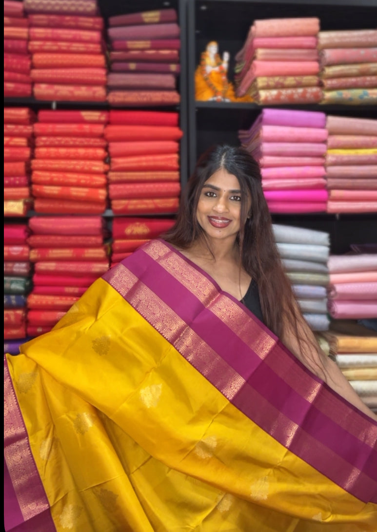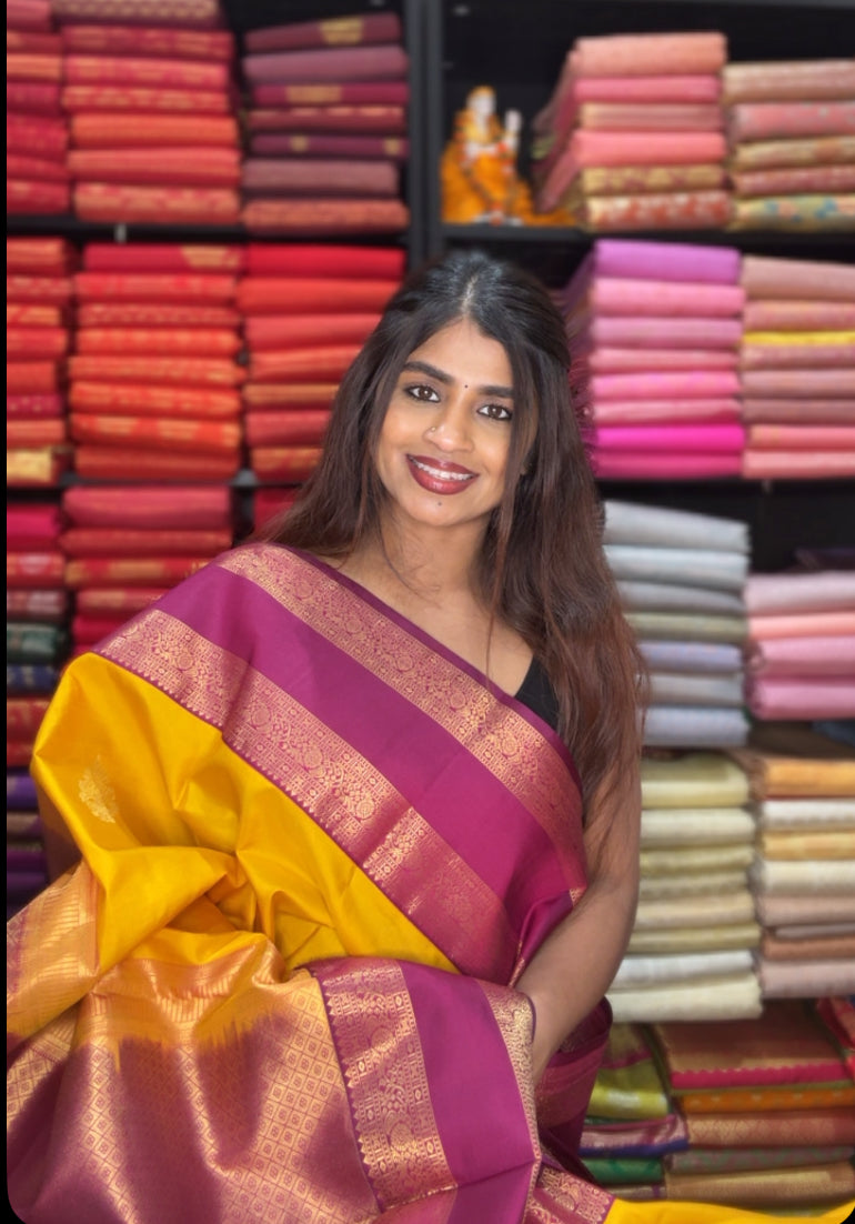 Pure Kanchipuram silk saree with beetroot colour border and blouse