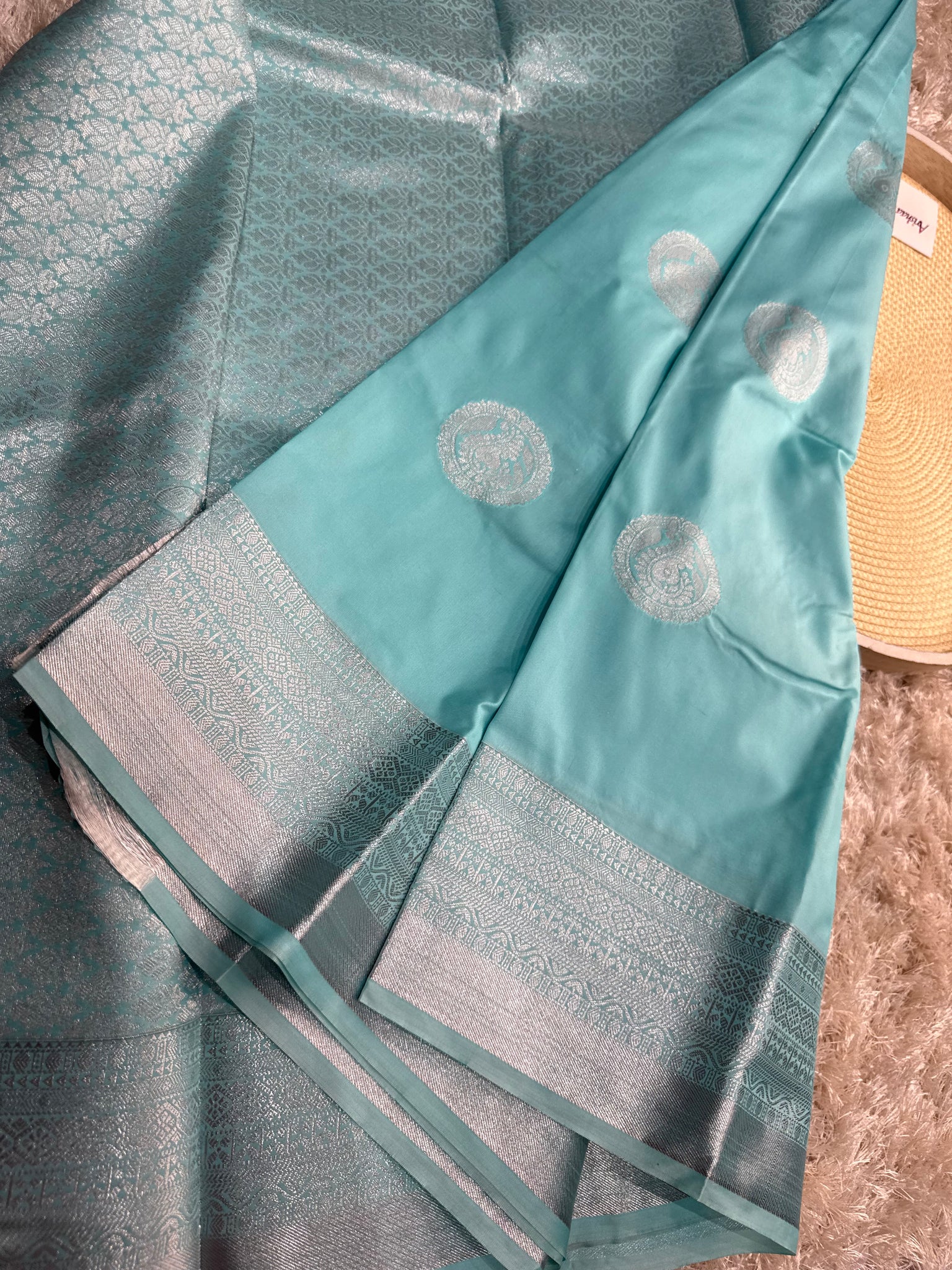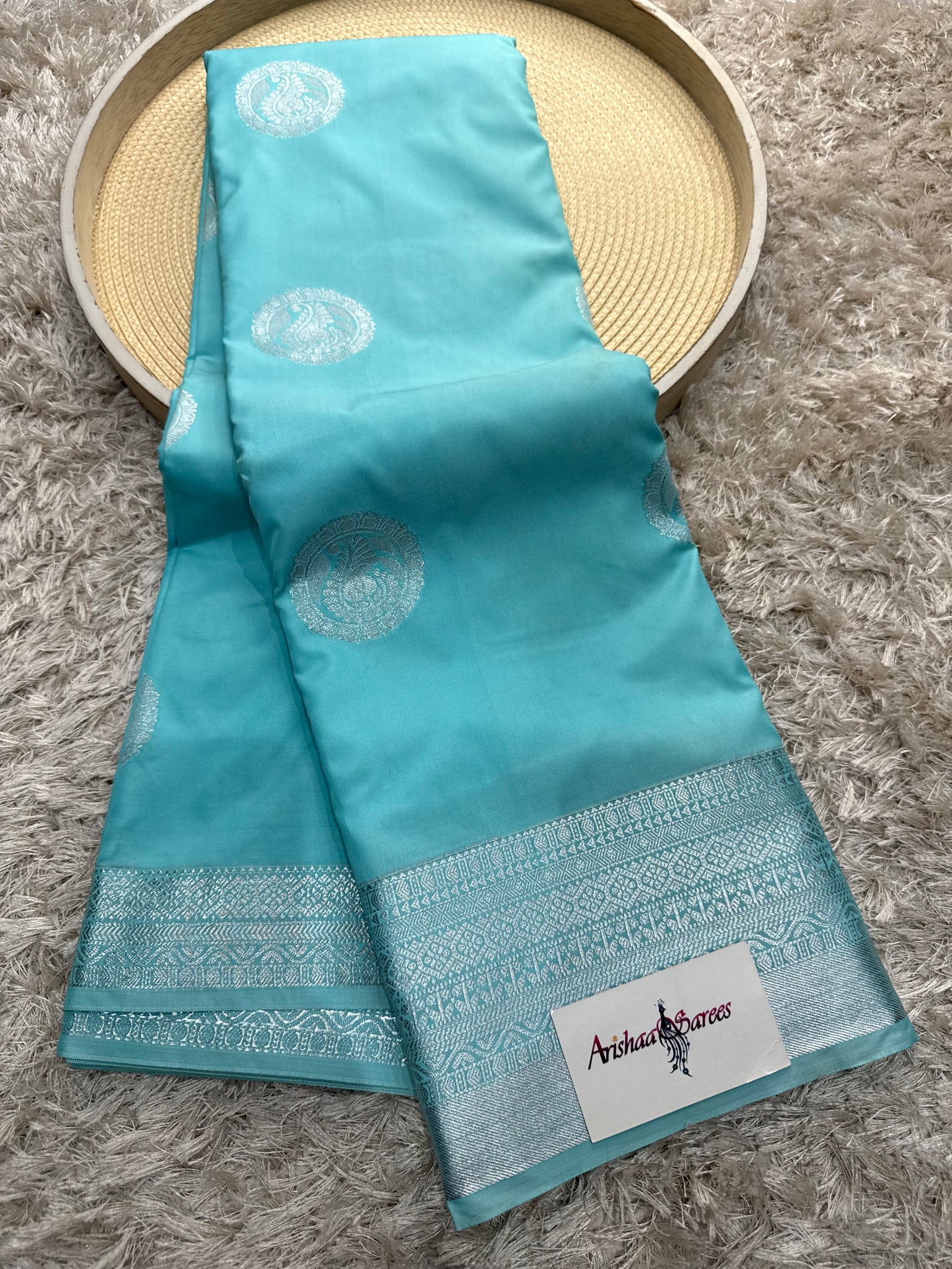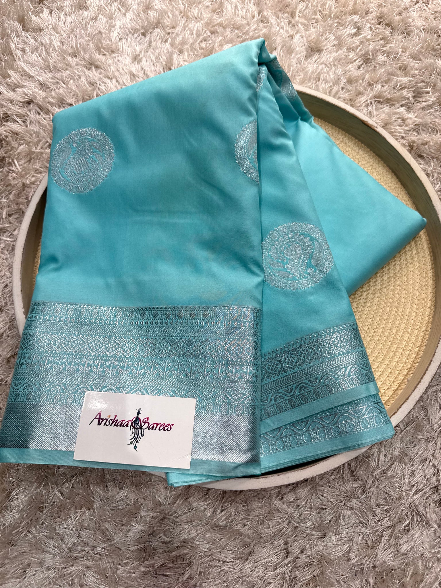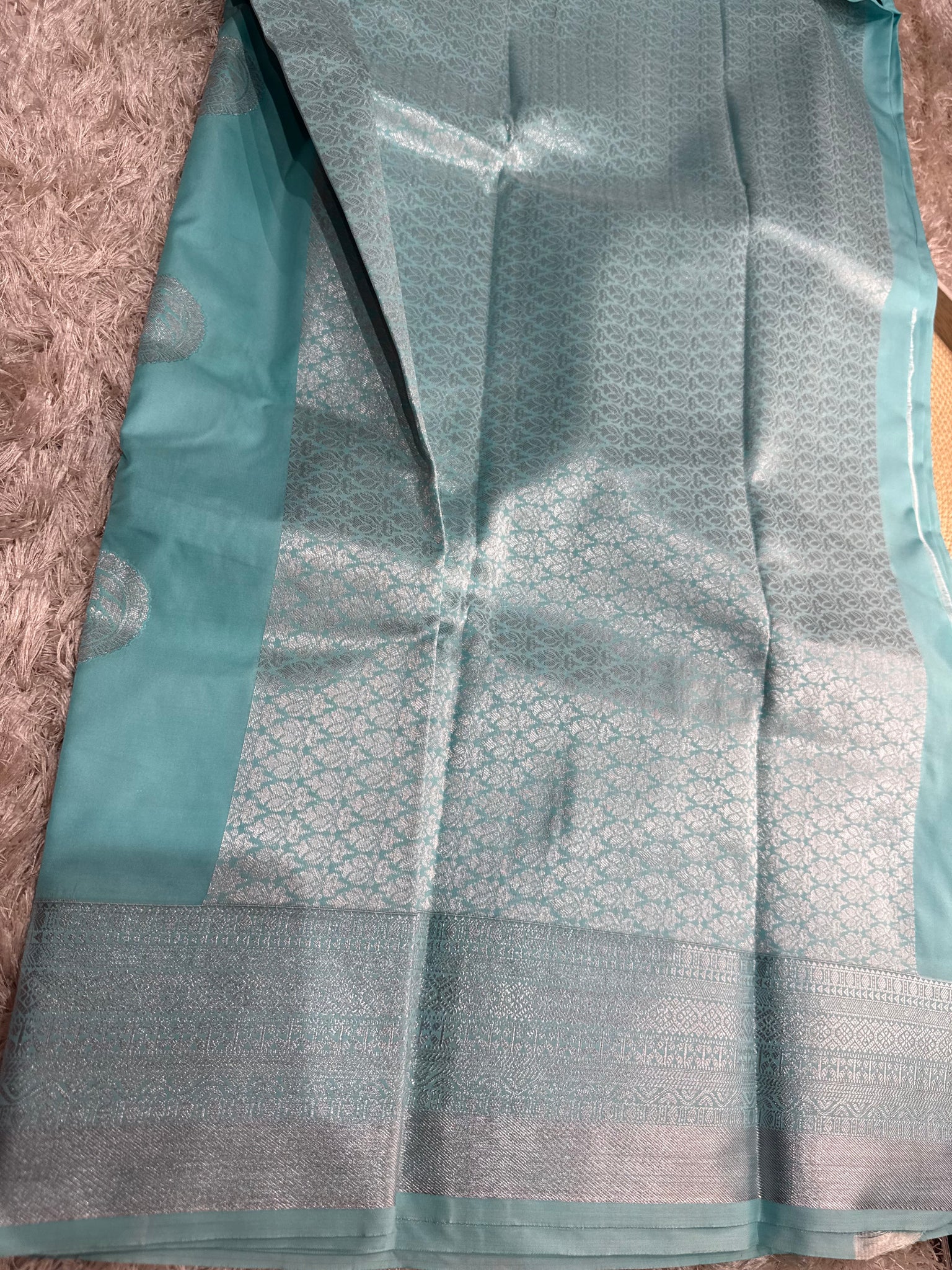 light blue semi Sikk Saree with running blouse