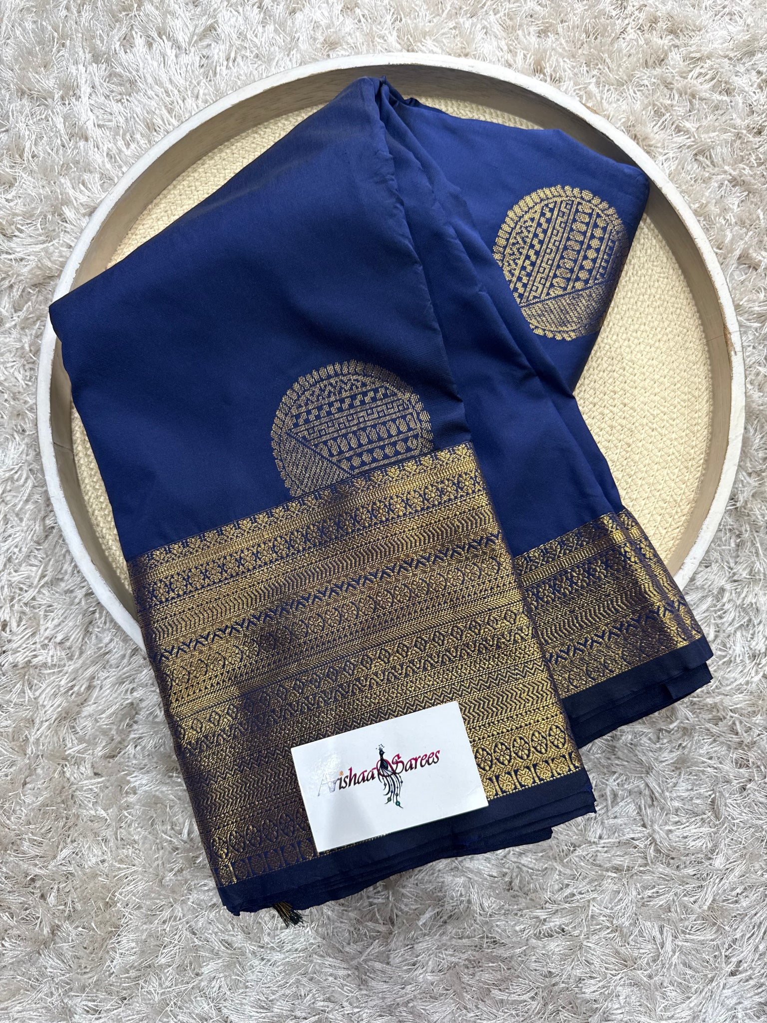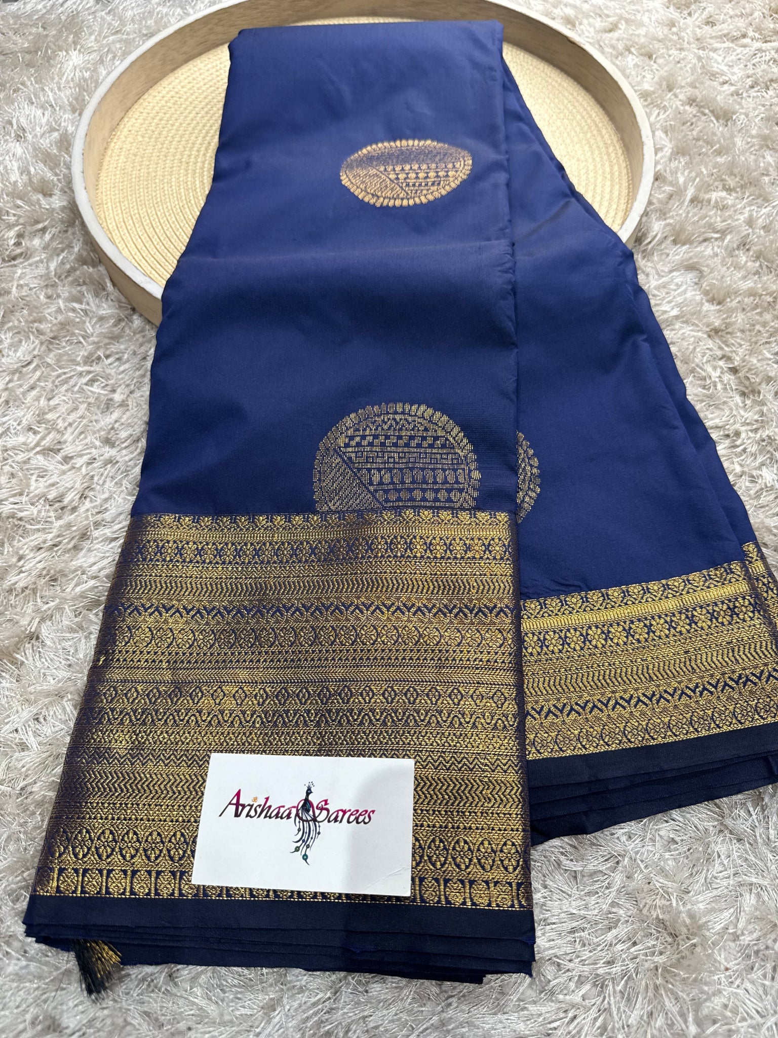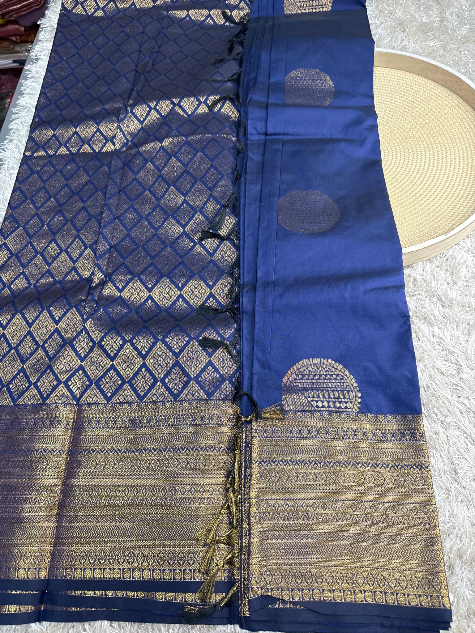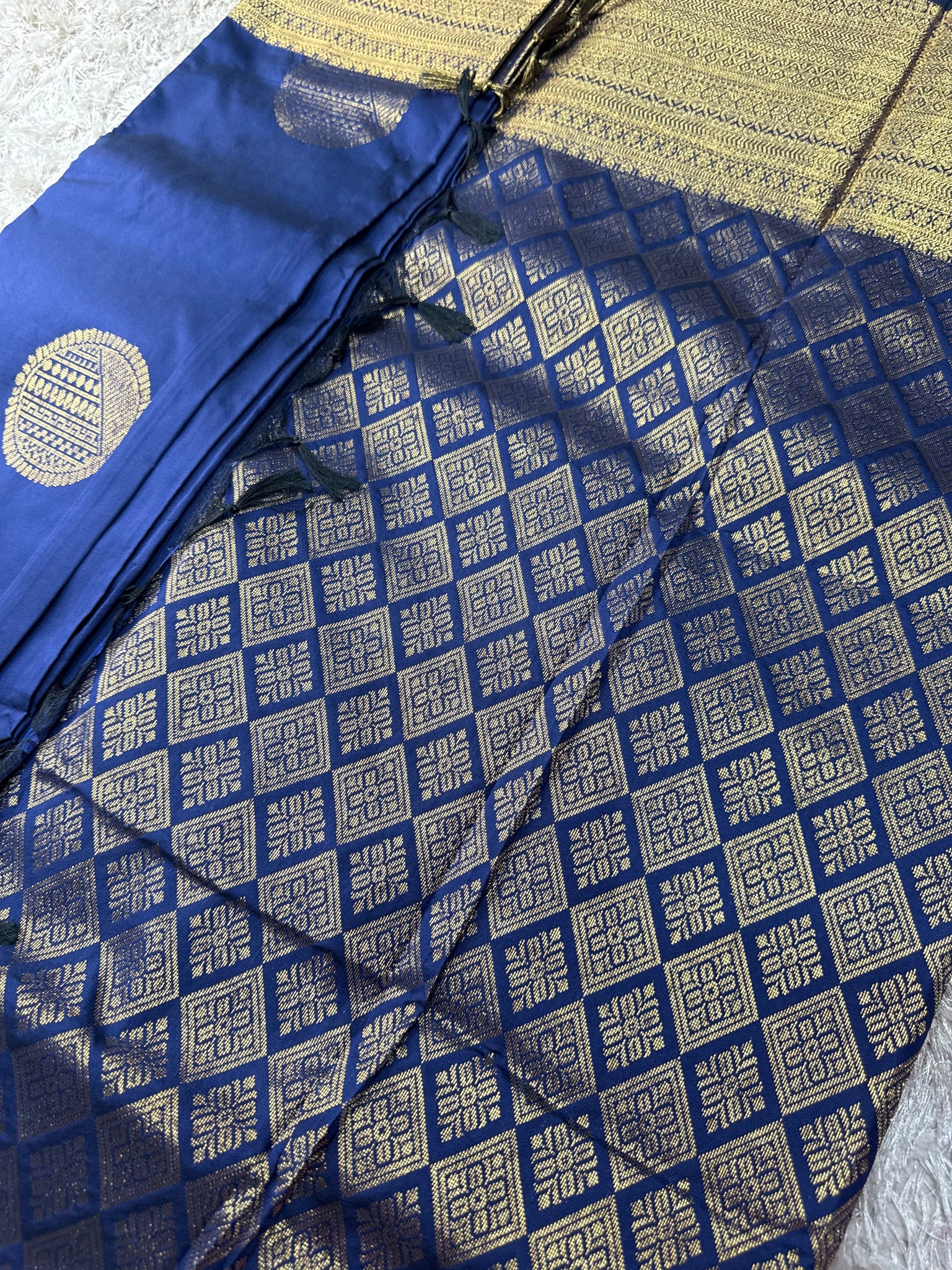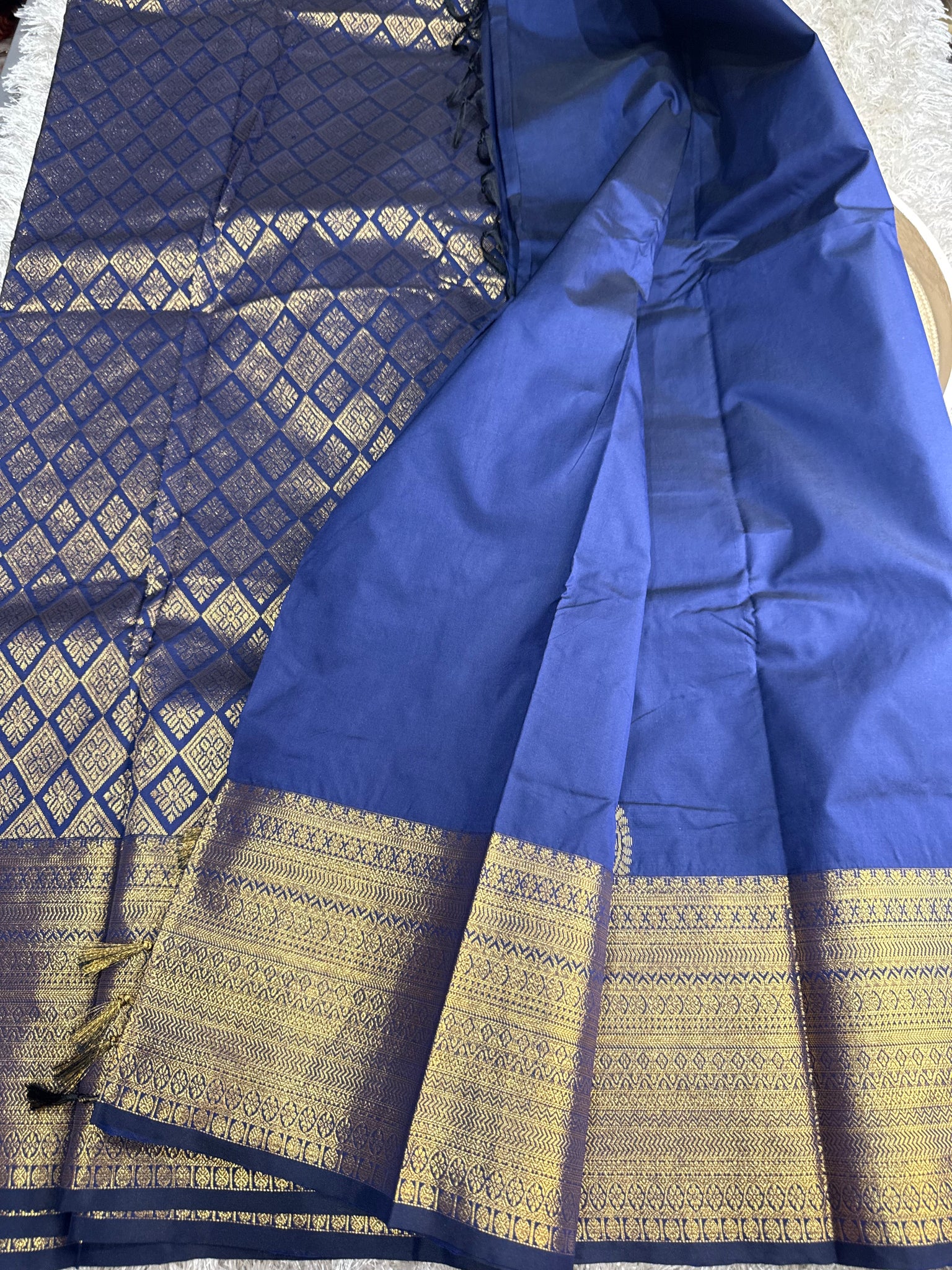Navy blue semi silk saree with running blouse
