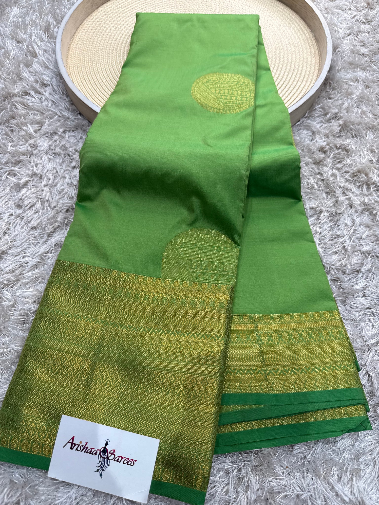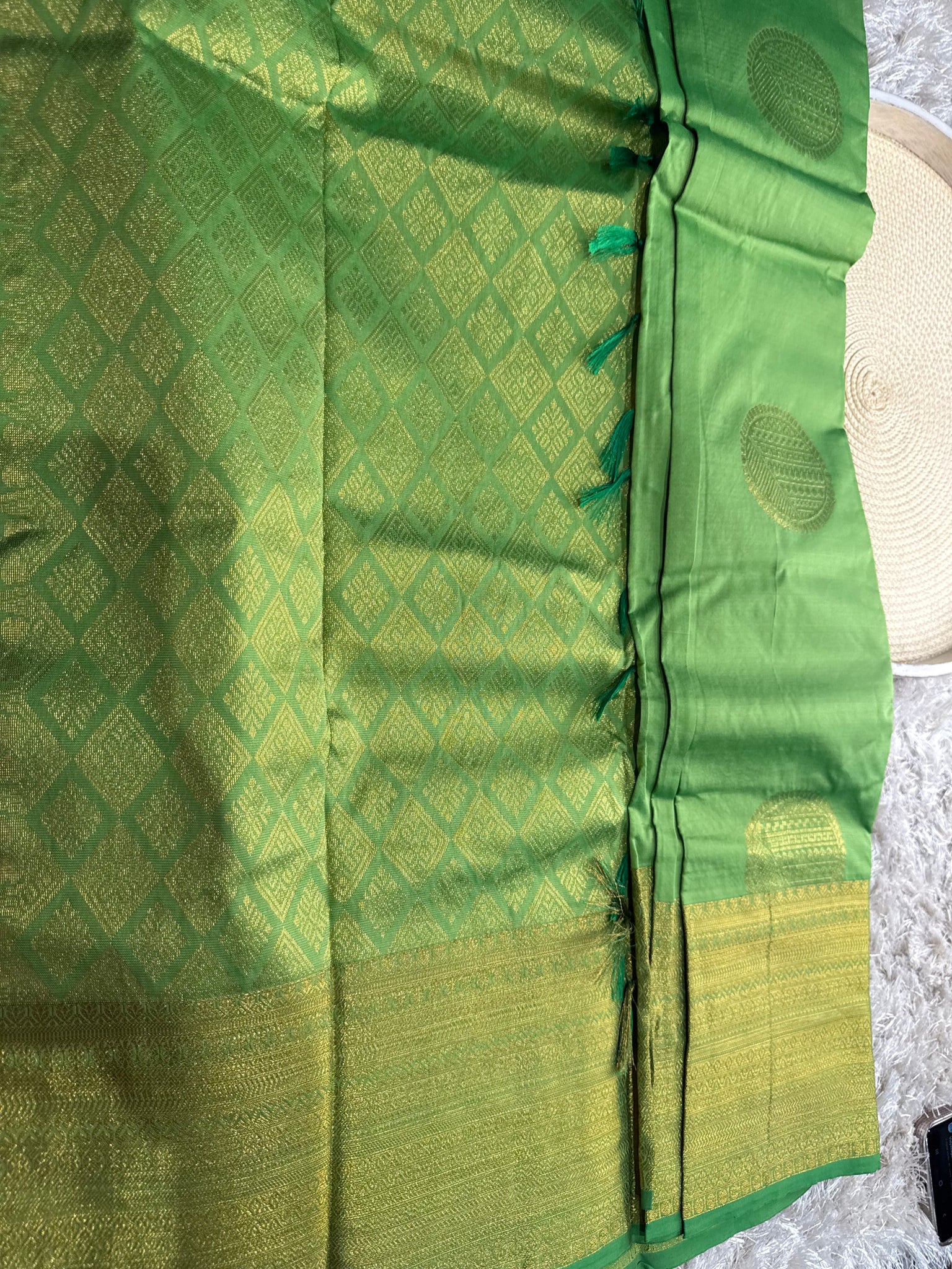 Apple green semi silk Saree with running blouse