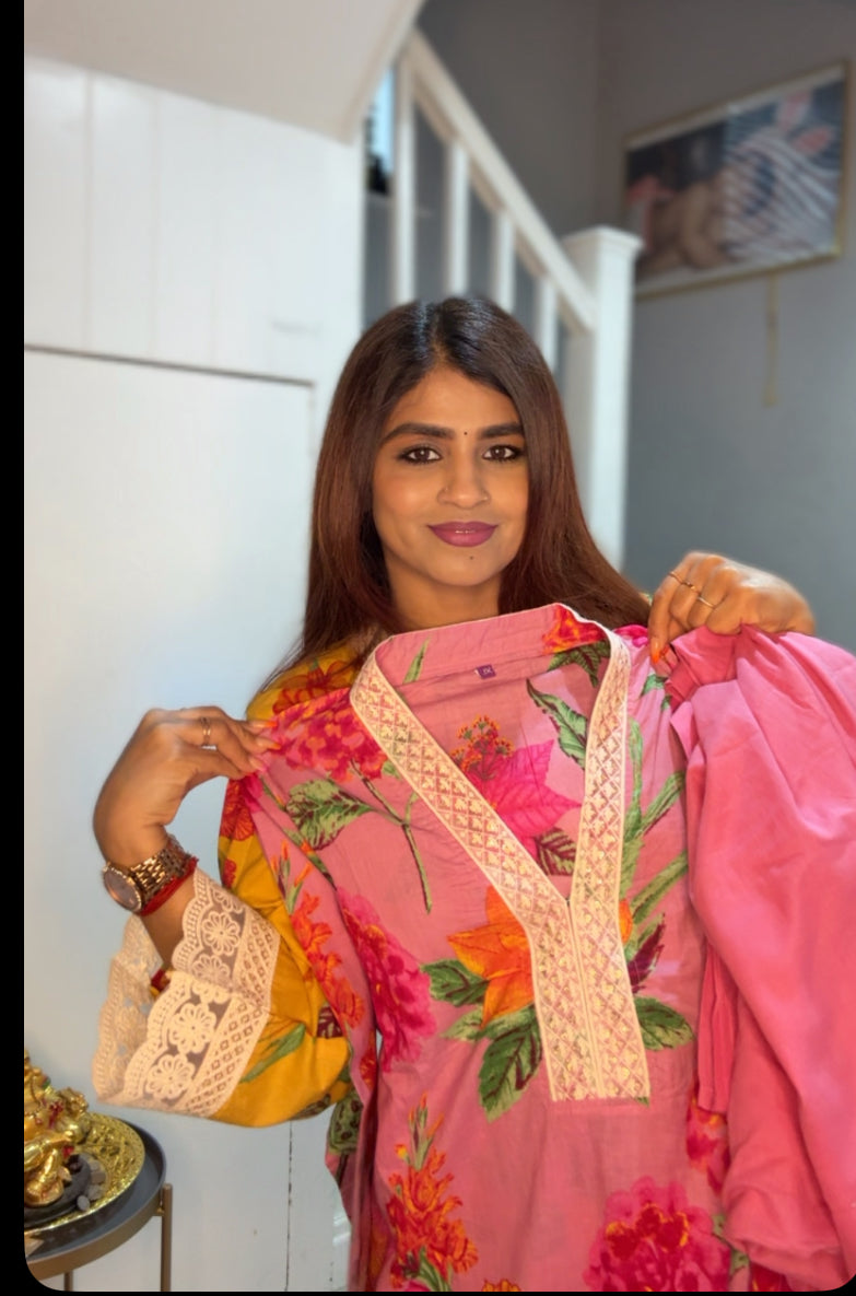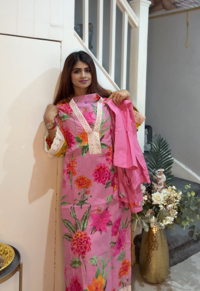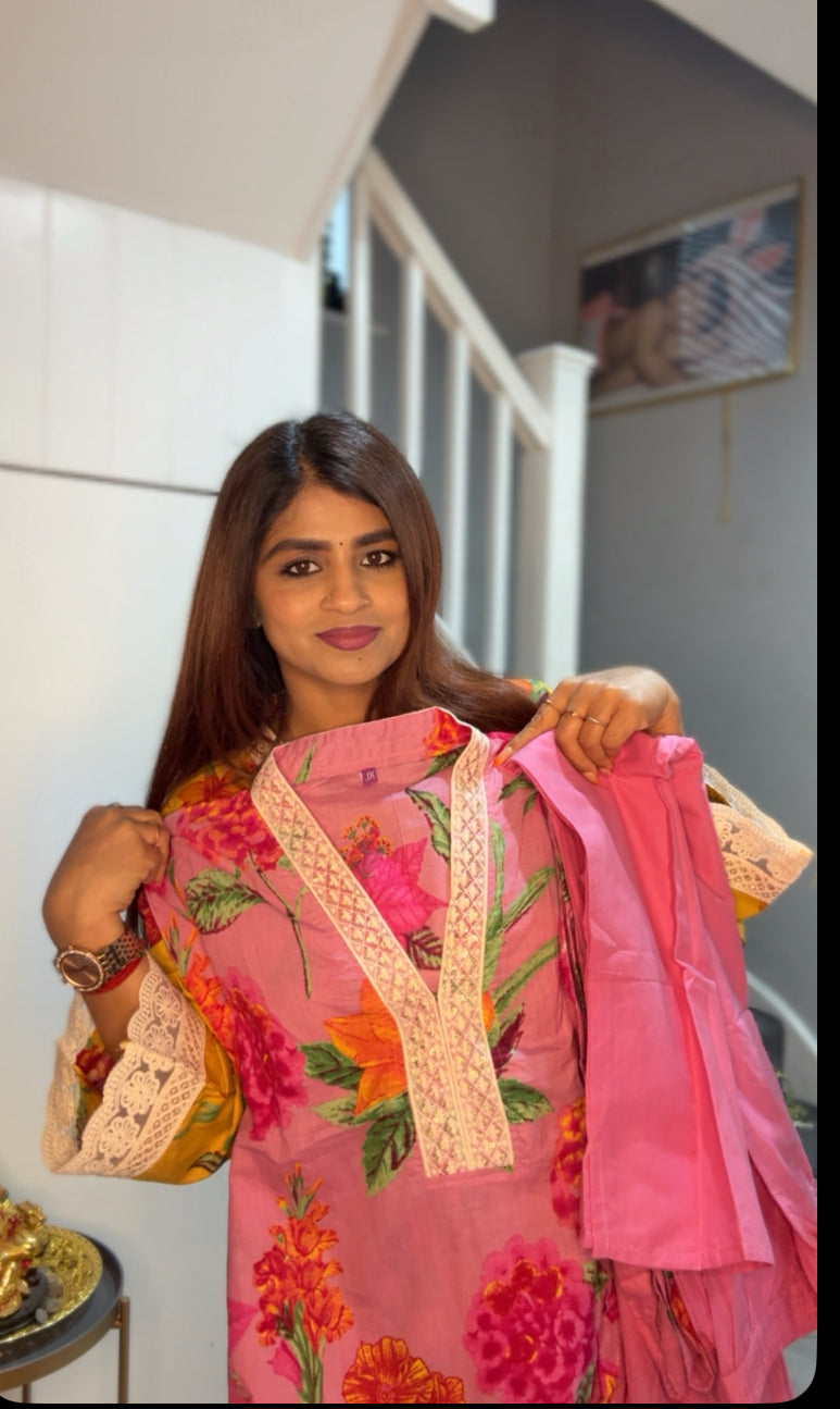 Pink floral cotton salwar comes with pant and Duppatta