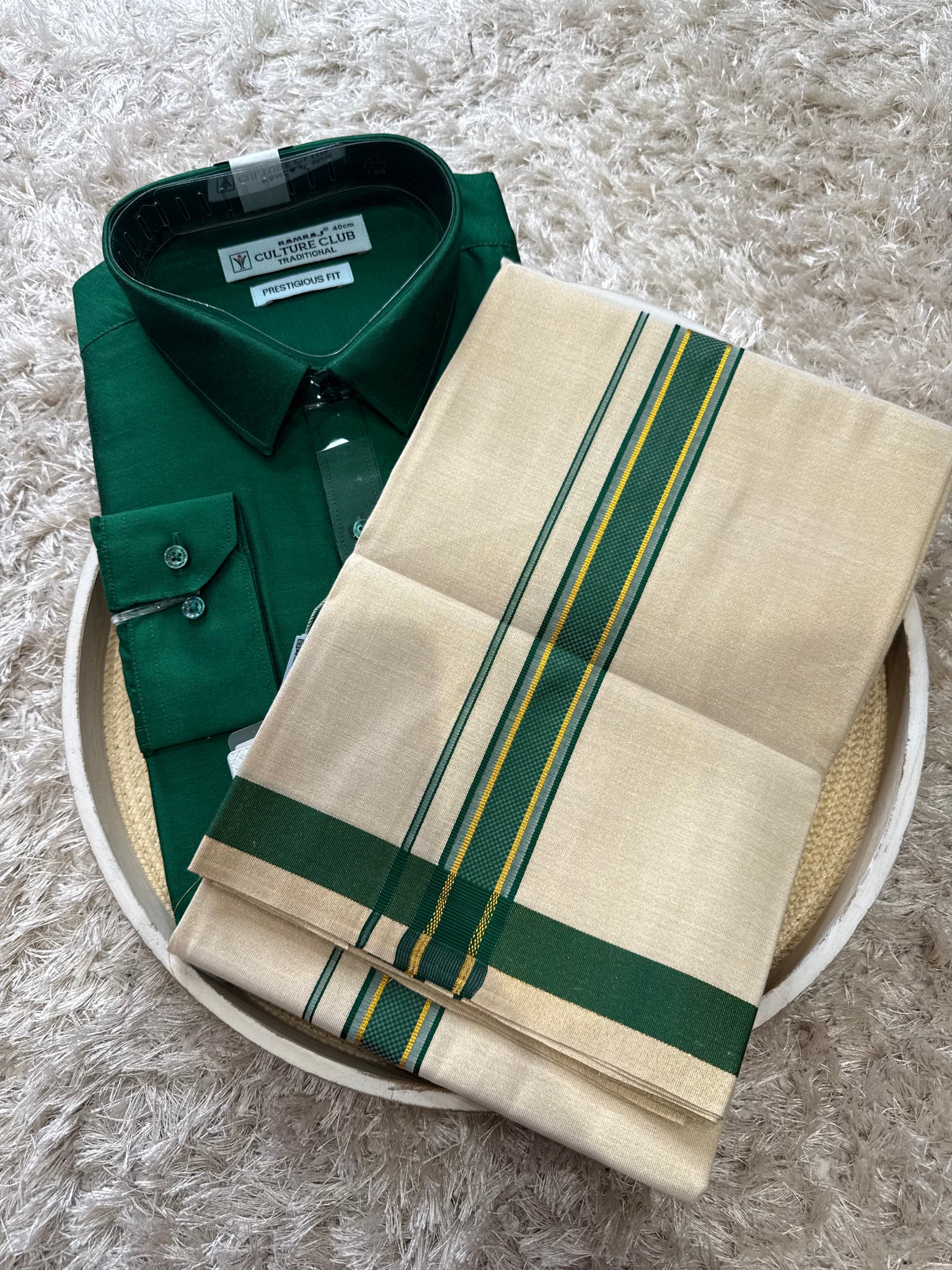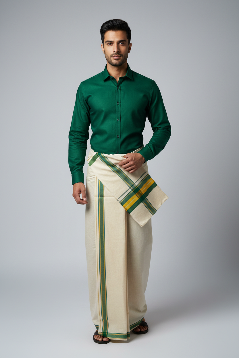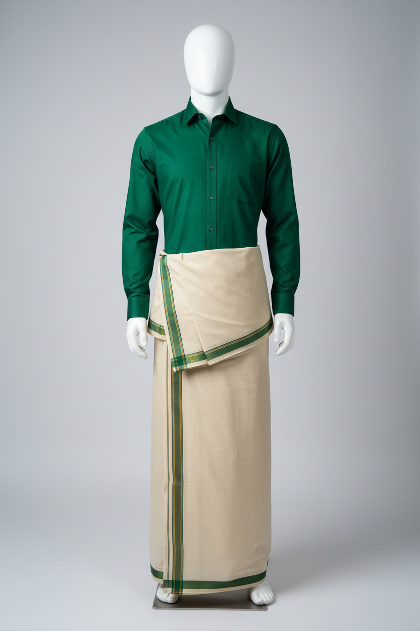 Tissue silk cotton vesti with Pattu shirt
