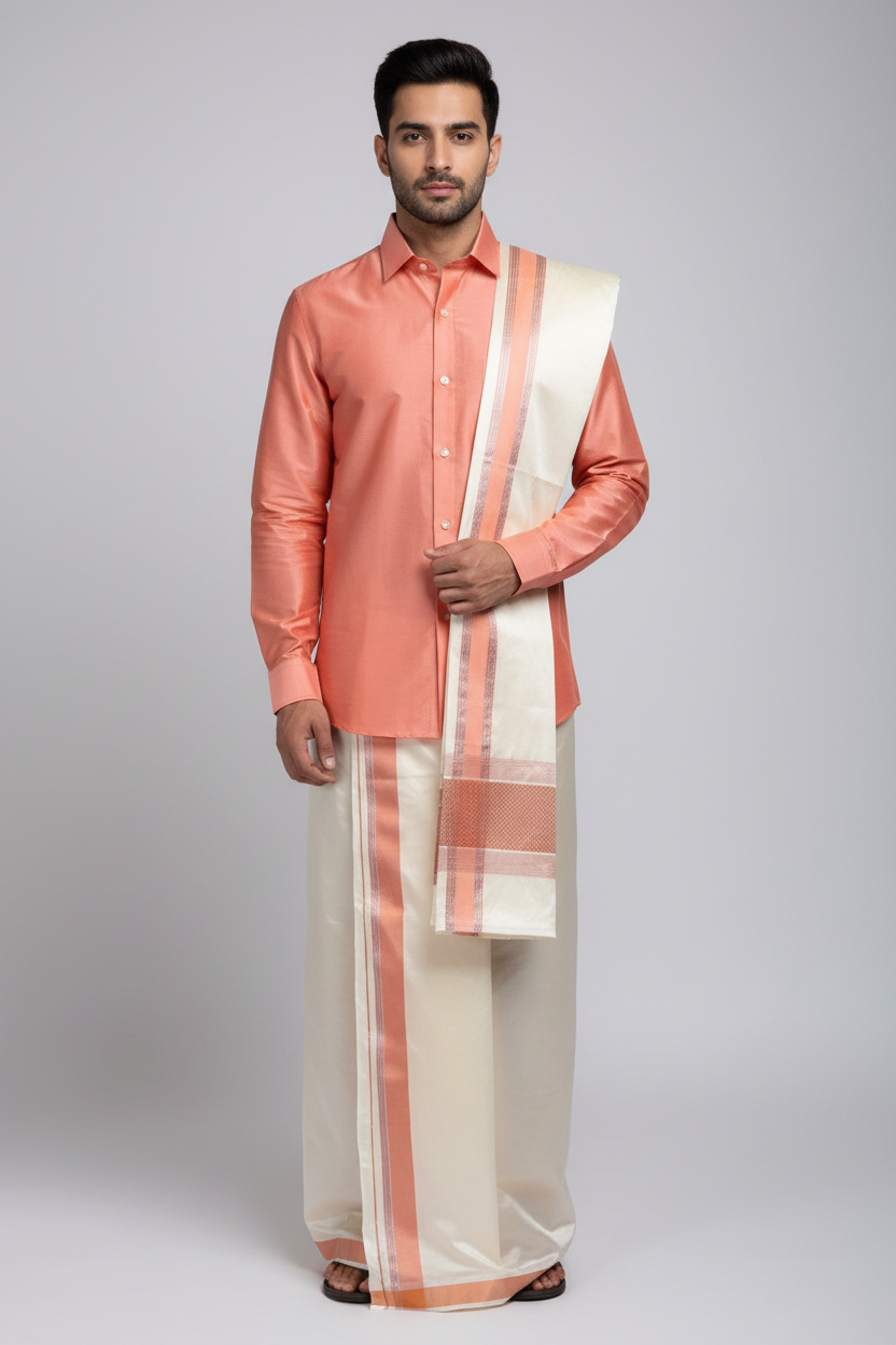 Silk vesti with peach shirt and Salvai